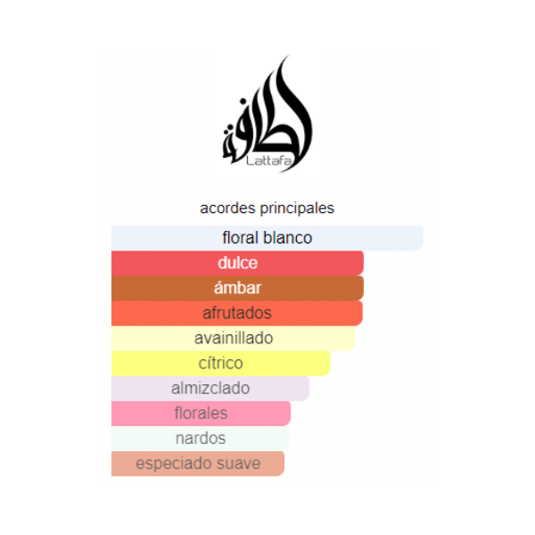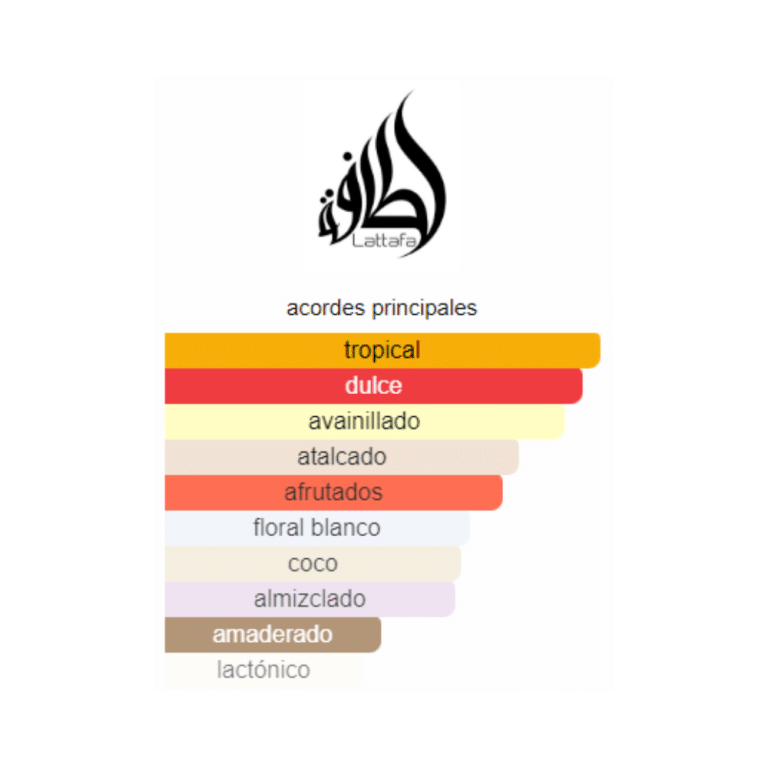 Lattafa Yaraes un perfume dulce y cremoso con notas de maracuyá, coco, vainilla y caramelo. Sofisticado y envolvente, deja un rastro femenino y seductor que cautiva los sentidos.
