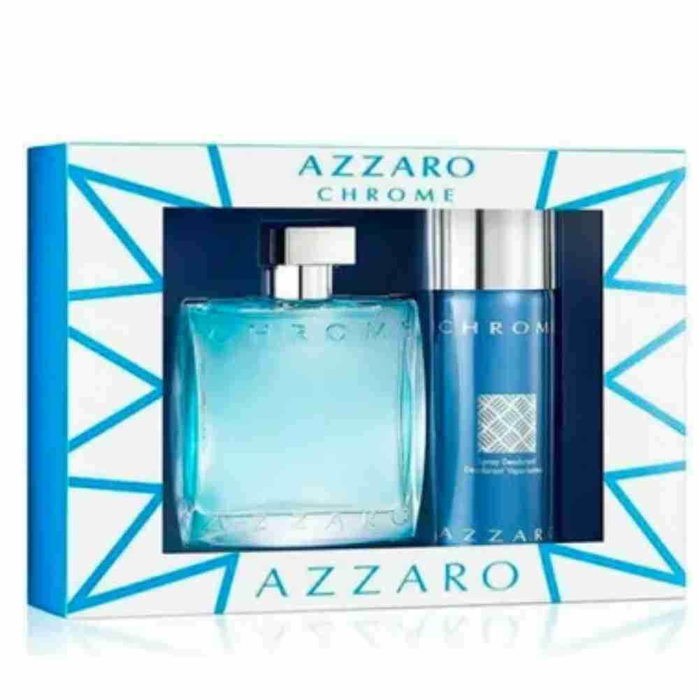 Estuche Azzaro Chrome  incluye una fragancia EDT de 100 ml y un desodorante de 75 ml. Su aroma fresco y amaderado combina cítricos, especias y maderas para un estilo sofisticado y duradero.