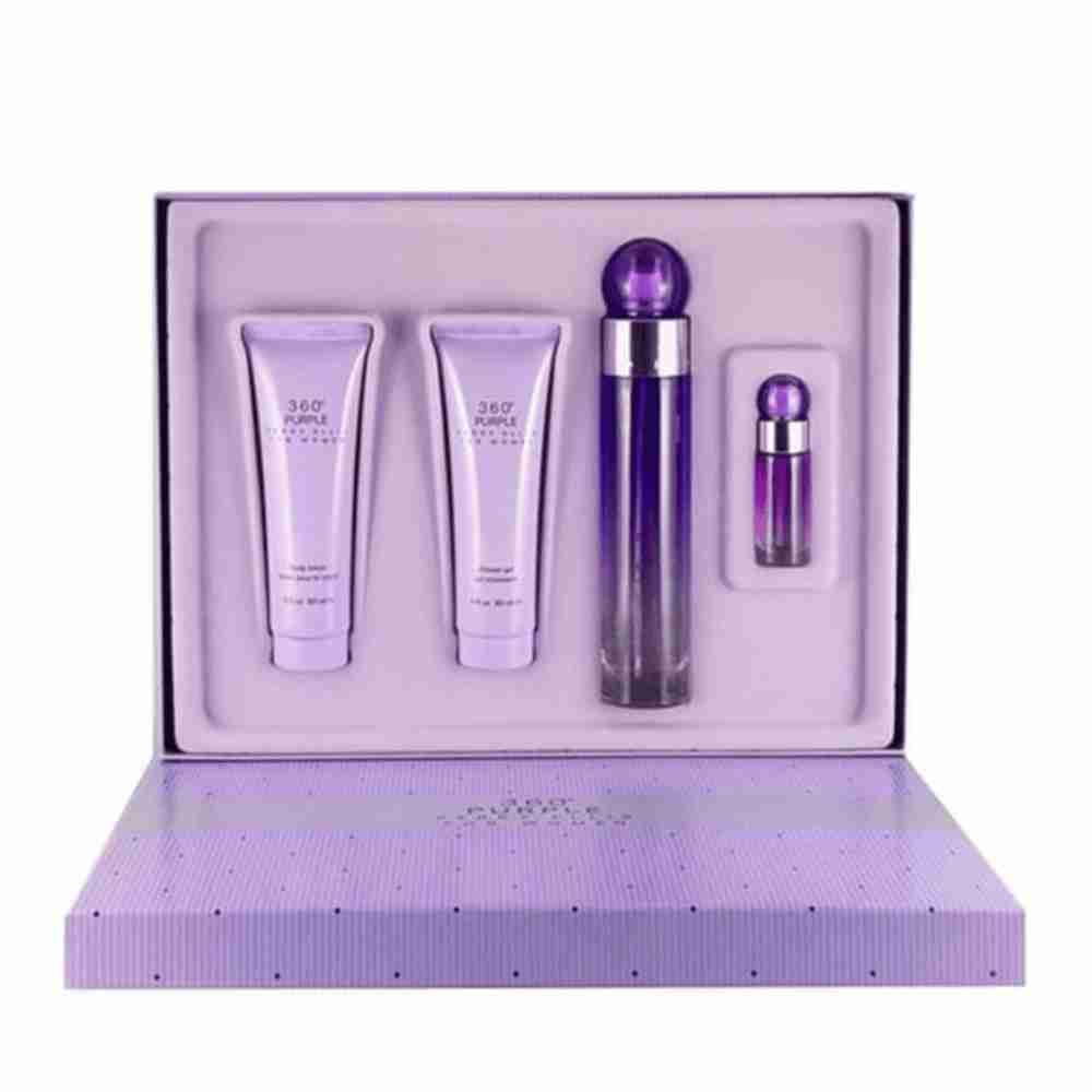 360° Purple se lanzó en 2013. Las Notas de Salida son zarzamora (frambuesa negra), durazno (melocotón) y flor de manzano; las Notas de Corazón son rosa rosada, jazmín, lirio de los valles (muguete), mimosa y nardos; las Notas de Fondo son almizcle, musgo de roble y sándalo.