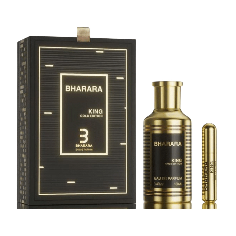 Perfume Arabe Bharara King Gold Edition – 100ml – EDP – Hombre El perfume Bharara King Gold Edition es una fragancia verdaderamente lujosa y majestuosa que emana un aura de poder, elegancia y exclusividad en cada una de sus notas aromáticas.