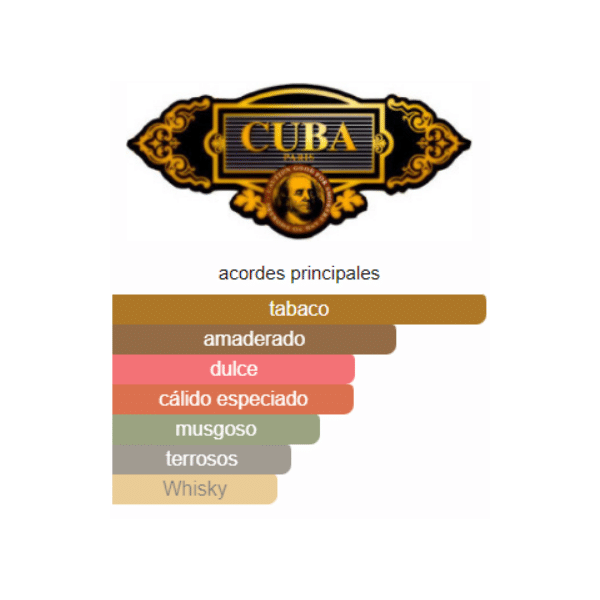 La fragancia contiene tabac0, notas amaderadas, especias y musgo de roble.