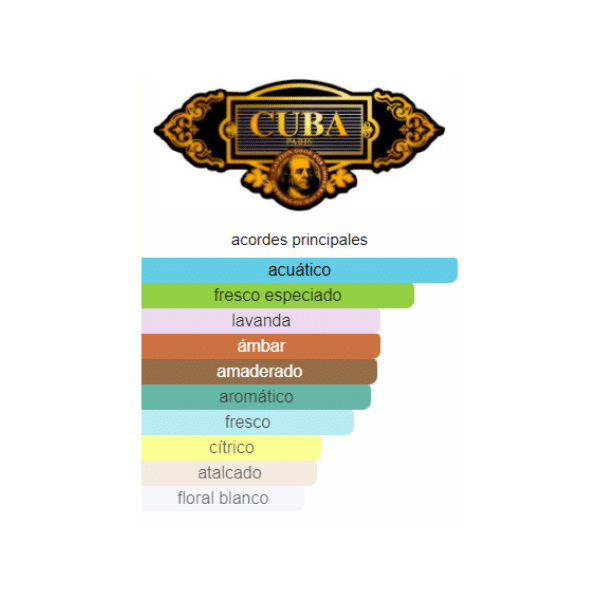 Cuba Winner se lanzó en 2017. Las Notas de Salida son notas acuosas, lavanda y bergamota; las Notas de Corazón son hoja de laurel y jazmín; las Notas de Fondo son ámbar, sándalo y pachulí.