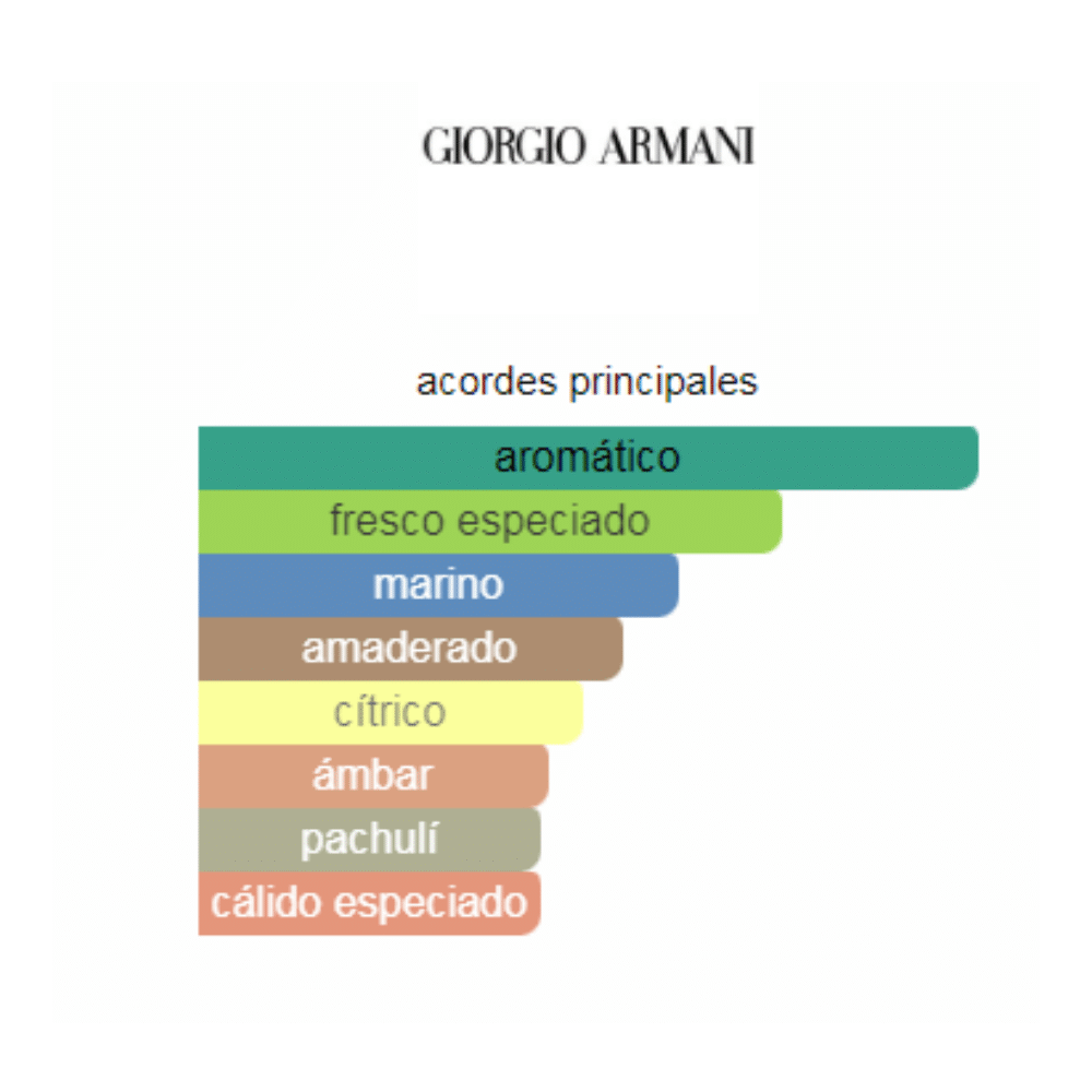 Las Notas de Salida son Notas marinas y bergamota; las Notas de Corazón son romero, esclarea y geranio; las Notas de Fondo son incienso de olíbano (franquincienso) y pachulí.