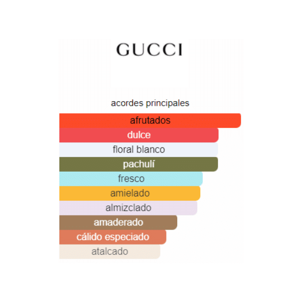 Gucci By Gucci es una fragancia sofisticada y envolvente con notas de guayaba, flor de tiaré y pachulí, equilibrando dulzura y calidez en un aroma elegante, femenino y duradero.