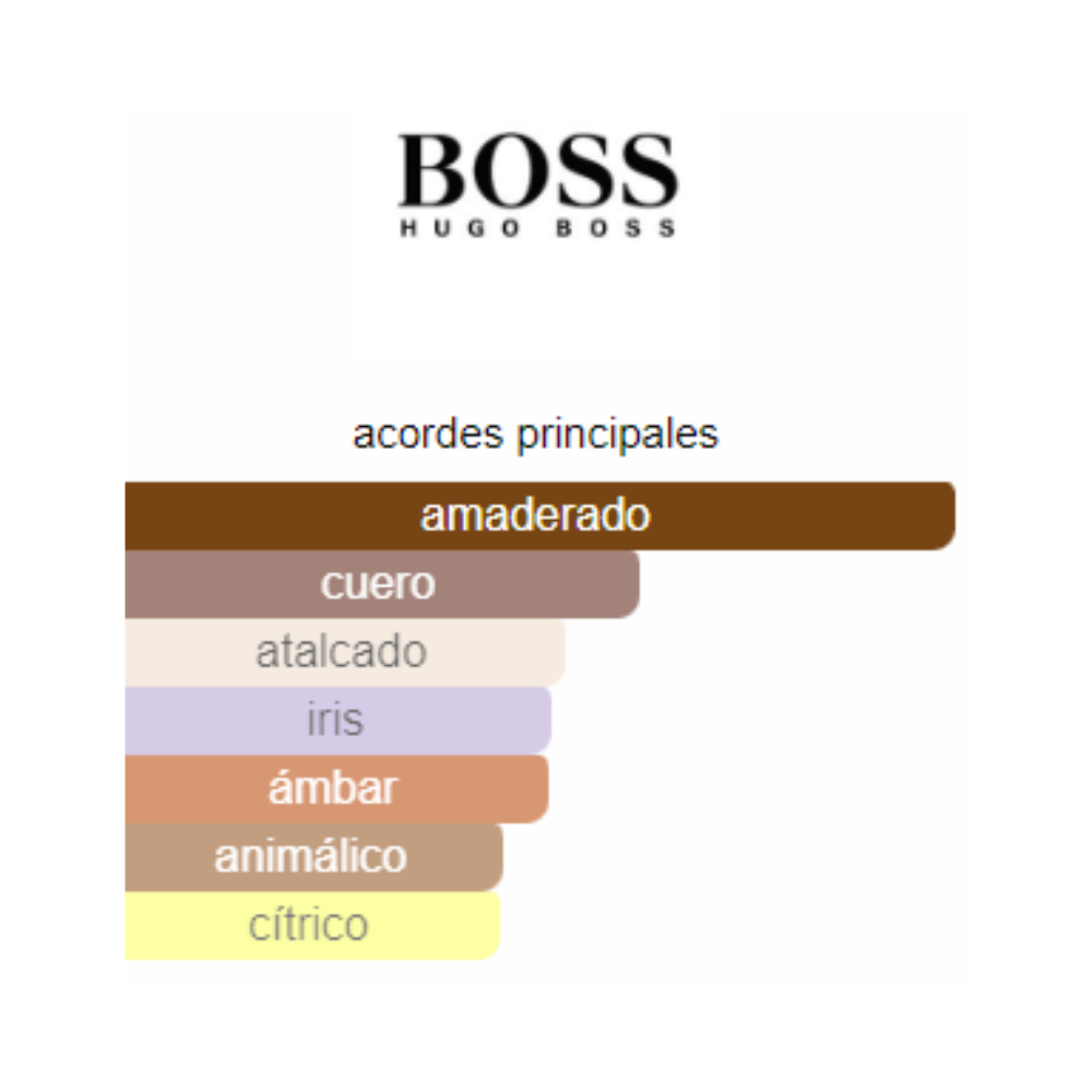 Esta base robusta le otorga profundidad y una elegancia atemporal que hace de Hugo Boss Bottled Parfum una opción ideal tanto para el día como para la noche.