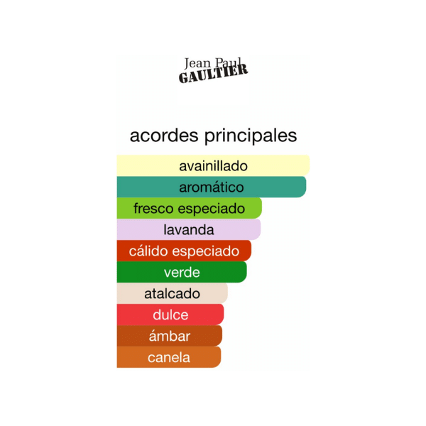 Las Notas de Salida son lavanda, menta, cardamomo, bergamota y abrótano; las Notas de Corazón son canela, flor de azahar del naranjo y alcaravea; las Notas de Fondo son vainilla, haba tonka, ámbar, sándalo y cedro.
