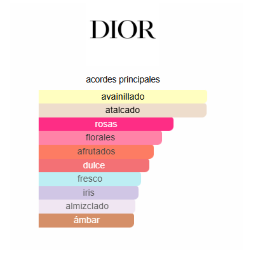 El absoluto de rosa de Grasse —una flor emblemática de Dior— se entrelaza armoniosamente con notas de peonía, iris y lirio del valle, creando una combinación romántica, luminosa y envolvente.
