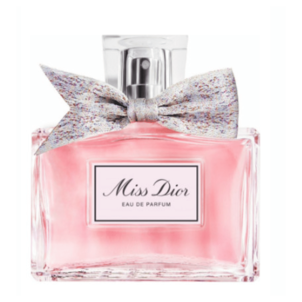 Su frasco, fiel al diseño clásico de Miss Dior, luce un lazo cannage plateado que subraya la elegancia y el espíritu juguetón de esta creación olfativa.