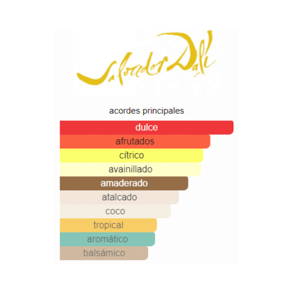 Las Notas de Salida son piña, limón marroquí (lima marroquí), toronja (pomelo), durazno (melocotón), hoja de gálbano, ciruela, mandarina y frambuesa; las Notas de Corazón son iris italiano, palo de rosa de Brasil, jazmín, lirio de los valles (muguete) y rosa de Egipto; las Notas de Fondo son coco, vainilla, sándalo de Madagascar, haba tonka, almizcle, pachulí, ámbar y cedro.