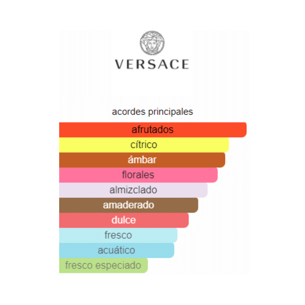 Lanzado por la prestigiosa casa Versace, este perfume pertenece a la familia olfativa floral-frutal y se distingue por su frescura envolvente y su carácter elegante.